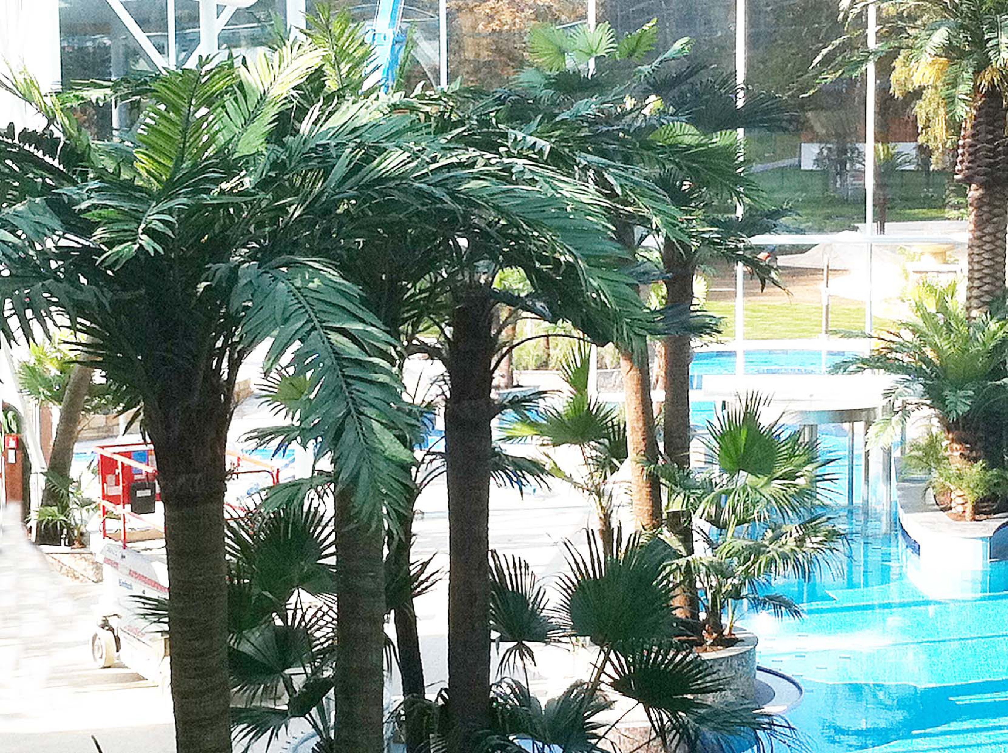 2012年4月份,松濤工藝90棵棕櫚樹(shù)安裝在奧地利當(dāng)地最大的溫泉水療中心。它們分別是由從2米-8米不等的各種仿真椰子樹(shù)、仿真蒲葵樹(shù)、仿真海藻樹(shù)等主打產(chǎn)品組成,其中30%是放于室內(nèi),70%是室外。